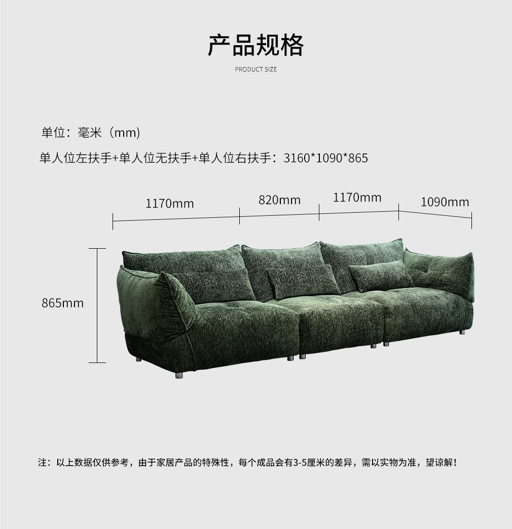 云间 SF-B2571M 布艺沙发 单人位左扶手+单人位无扶手+单人位右扶手